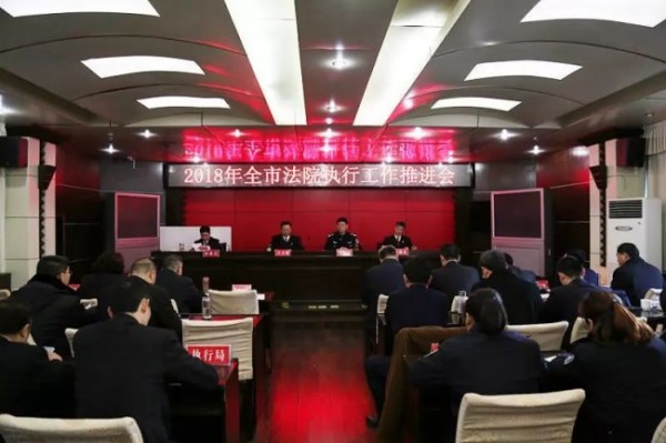 2月13日下午,离农历新年还有两天时间,在信阳中院审判楼三楼视频会议室里,全市法院主管执行工作的副院长及执行局长们在此召开了2018年全市法院执行工作推进会,会上传达贯彻了2月12日全省中级法院执行局长座谈会会议精神,安排部署了全市执行整改工作,并对春节期间执行工作出了重要要求,号召大家“春节不放假,亮剑执行难”。